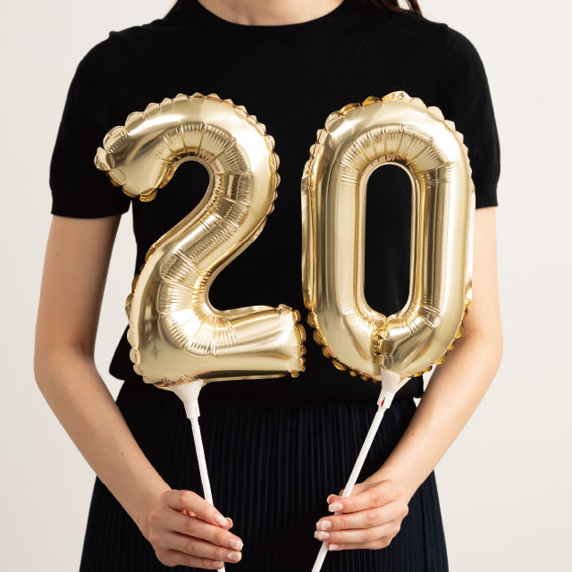 赤バラや青バラにカスミを入れたり「20」のバルーンを入れたり出来ます。