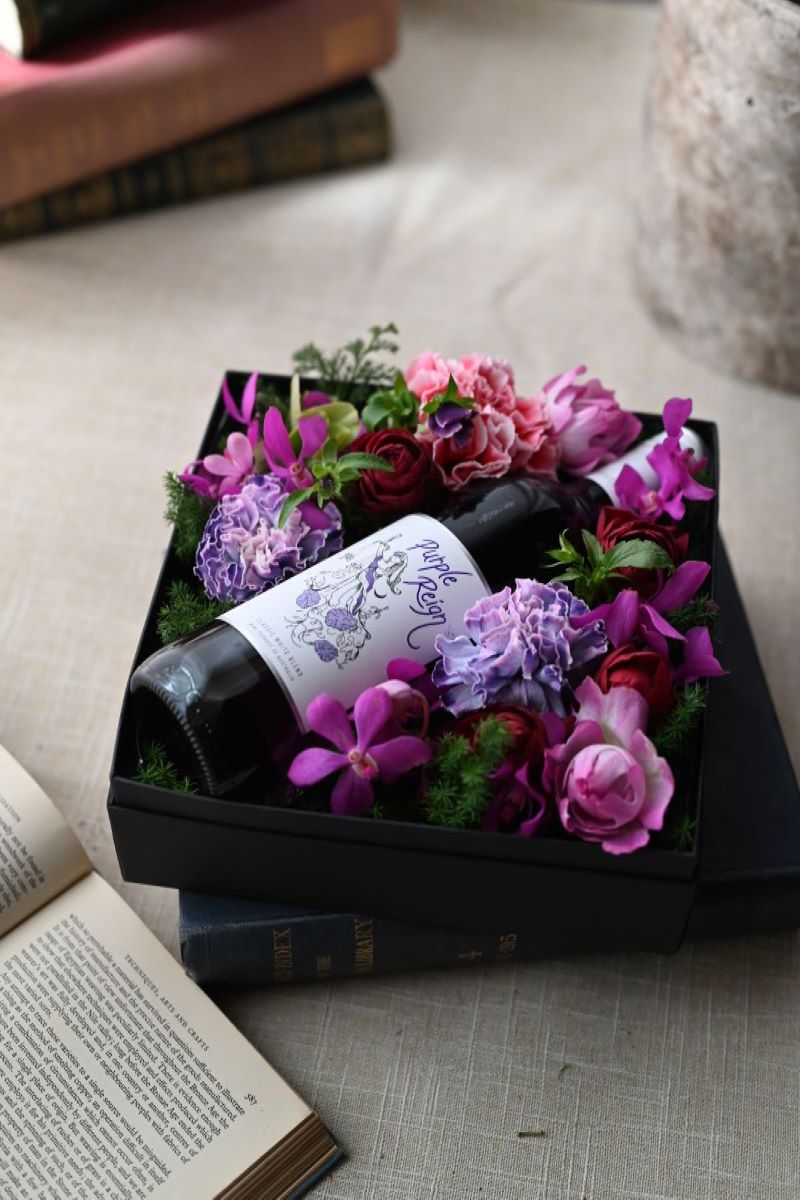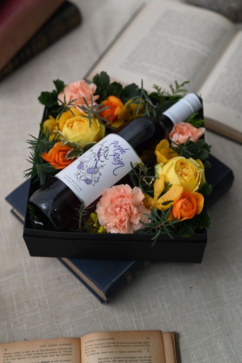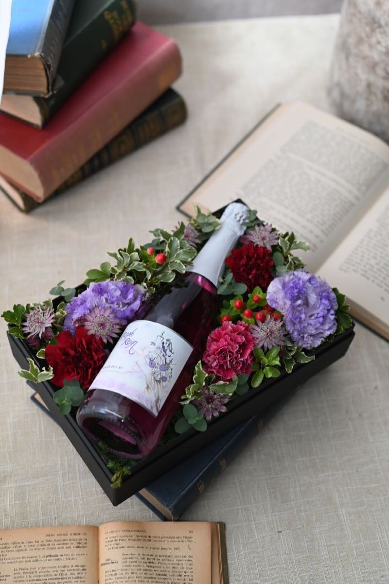 お花と紫ワインギフト 【ID:024A3B146278B】