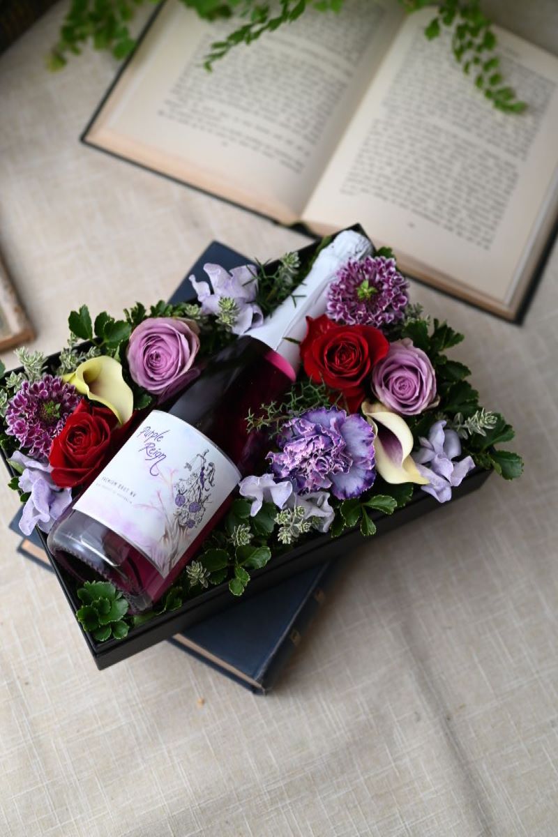 紫ワインとプリザードフラワーギフト 【ID:118EFFCBDB130】30000, other, お酒と花のギフト, プリザーブドフラワーBy 花心2023年11月24日【ID:118EFFCBDB130】 価 格:33000円(税込) 色 目:紫 Details