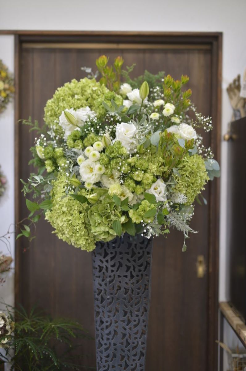 お祝いスタンドフラワー 【ID:0738074645000】15000, white, スタンドフラワーBy 花心2023年7月31日【ID:0738074645000】 価 格:16500円(税込) 色 目:ホワイト・グリーン Details